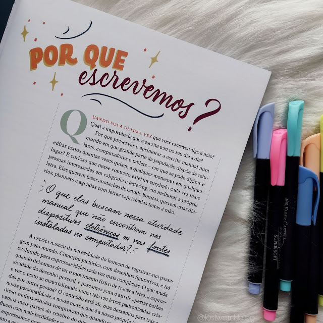 A obra é bem completa, consegui aprender várias técnicas de escrita, caligrafia e lettering. Tudo é bem detalhado, e de fácil compreensão. Eu optei por não escrever no livro (na terceira foto vocês podem ver que tem essa opção), e sim em um caderno, errando e tentando de novo até gostar do meu lettering.